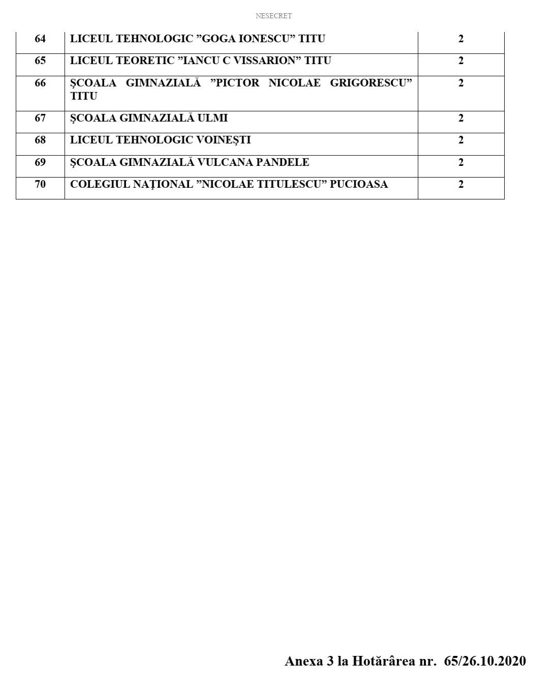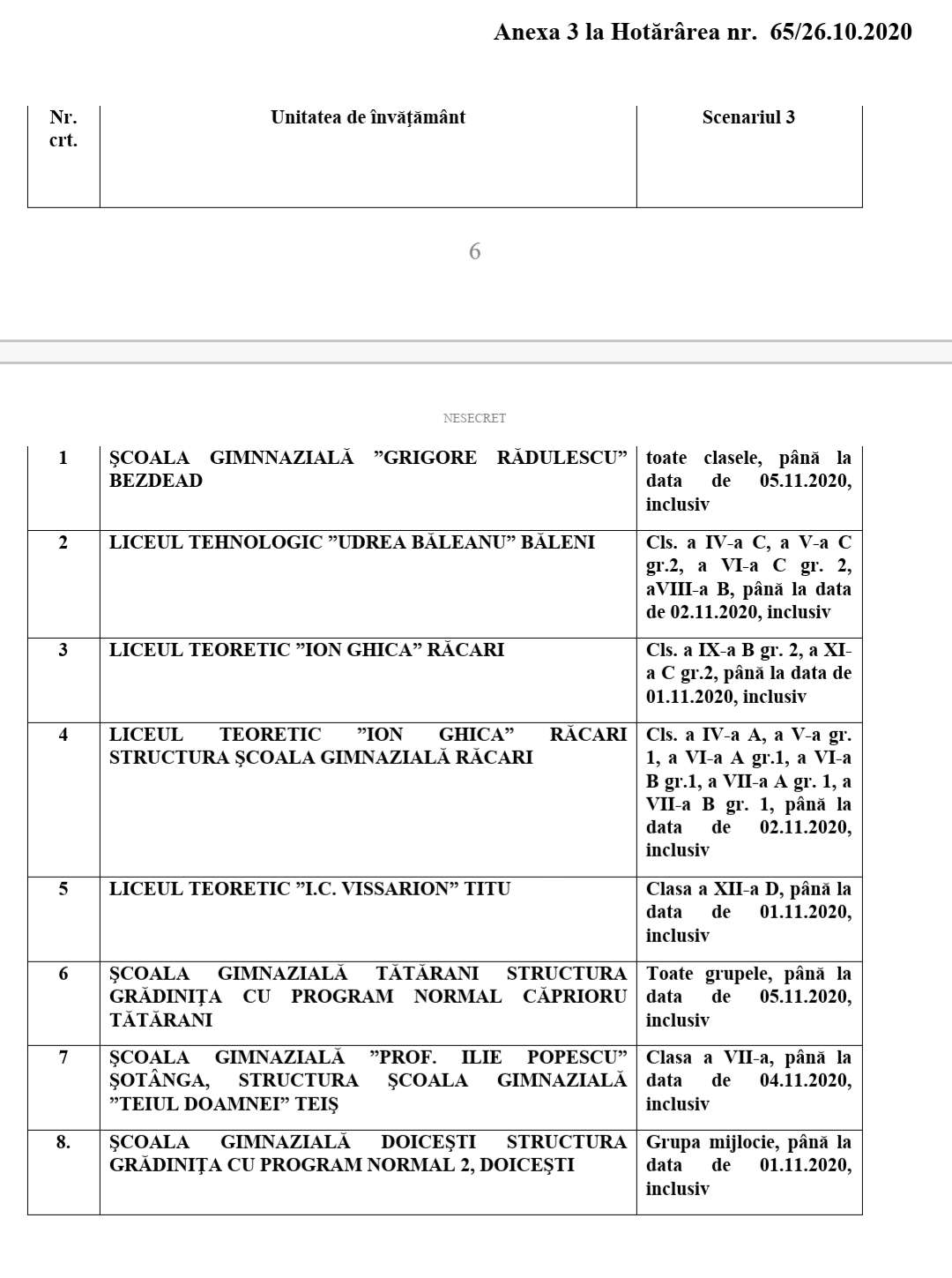 – Hotărârea CJSU nr. 54/19.10.2020 privind aprobarea scenariilor de funcţionare pentru unităţile de învăţământ/clase/grupe din judeţul Dâmboviţa.