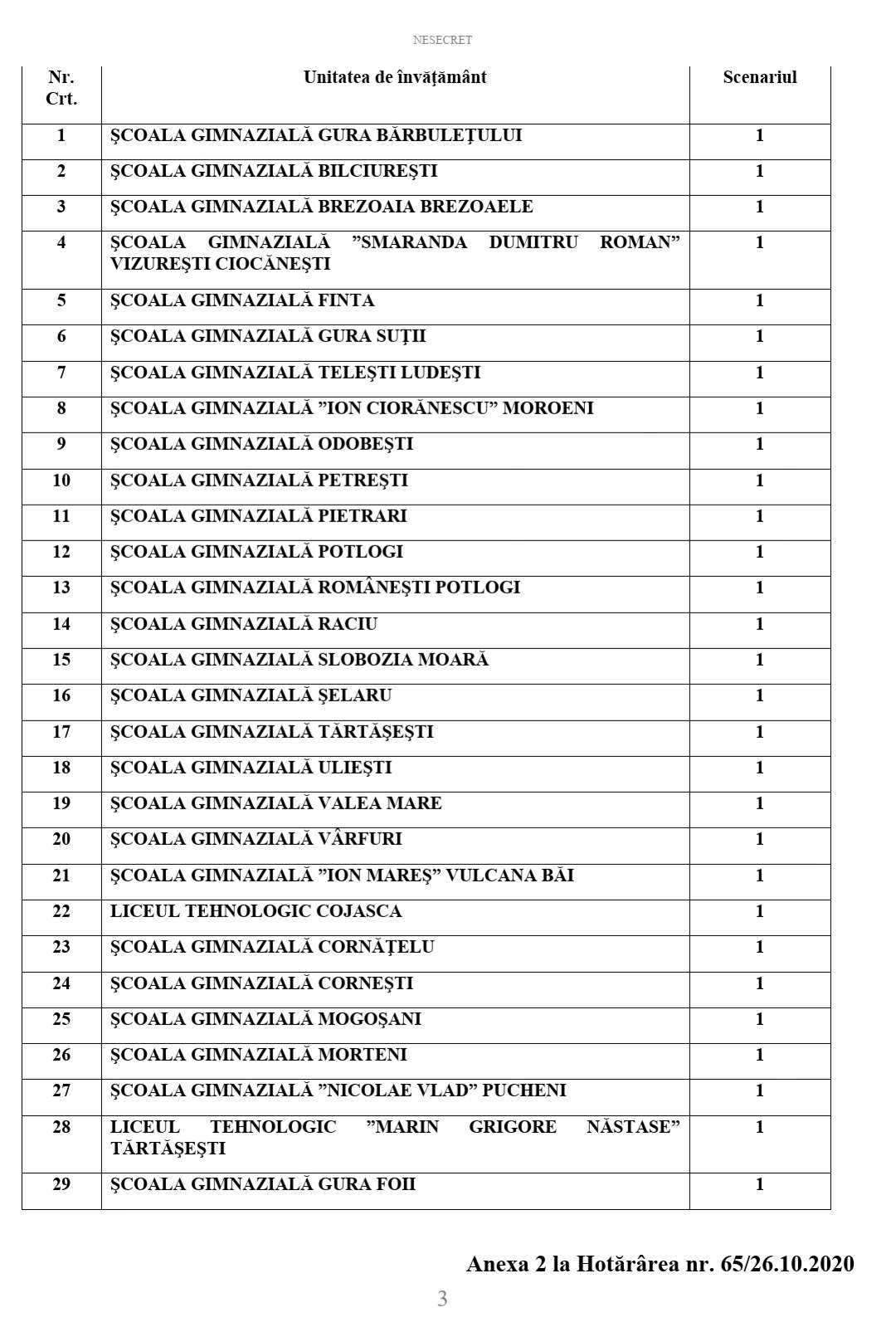 Art.3. Se aprobă scenariul de funcţionare nr. 3 pentru unităţile şcolare/clasele/grupele prevăzute în Anexa nr. 3.