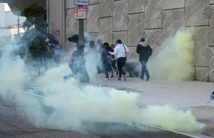 Mulțimile de oameni s-au deplasat prin oraș, iar manifestația a fost declarată ilegală și a fost emis un ordin de dispersare. Ofițerii îmbrăcați în echipament antirevoltă s-au ciocnit cu protestatari, care au aruncat bucăți de beton. S-a intervenit în forță asupra oamenilor, prin rafale de gaze lacrimogene, spray cu piper și arme sonice. Nu este clar dacă au avut loc arestări.