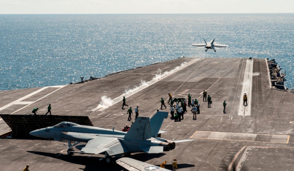 Marea Chinei de Sud, o zonă strategică revendicată de mai multe state, este controlată în mare parte de China, care a construit baze militare pe insule contestate, în pofida unei decizii internaționale care îi respinge pretențiile. Statele Unite mențin o prezență constantă în regiune, argumentând că acțiunile Beijingului amenință libertatea de navigație și comerțul global.