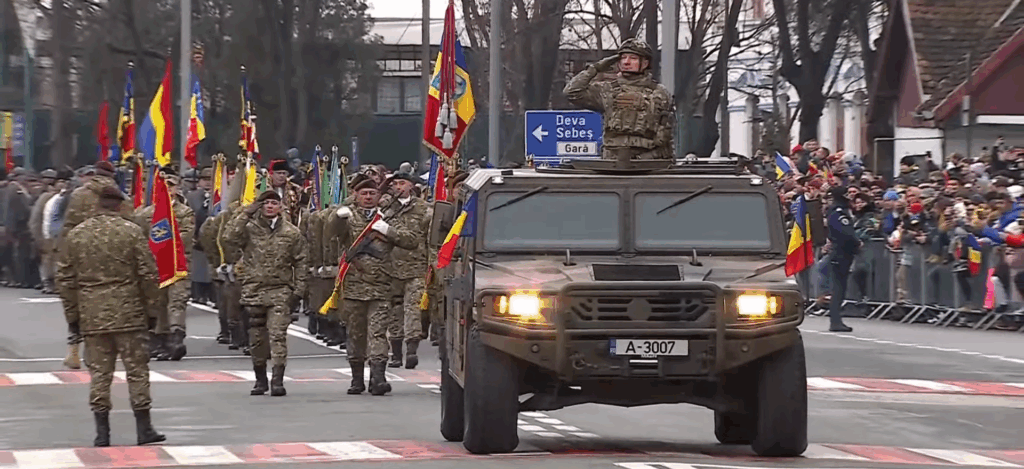 Știrea inițială. La parada de Ziua Națională organizată la Alba Iulia, programată de la ora 14, defilează circa o mie de militari, cu vehicule de luptă VAMTAC și JLTV, complexe de artilerie antiaeriană Gepard, sisteme Himars și transportoare Piranha, după cum a informat Divizia 4 Infanterie “Gemina”, citată de Agerpres. De asemenea, cerul va fi survolat de elicoptere IAR și avioane F-16 Fighting Falcon ale Bazei 71 Aeriană “General Emanoil Ionescu”.