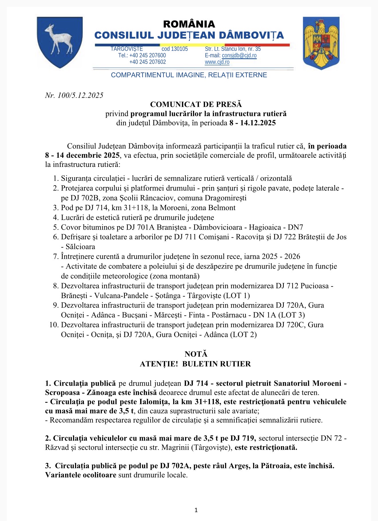 CJDambovita si LDPDambovita: Comunicat de Presă.
