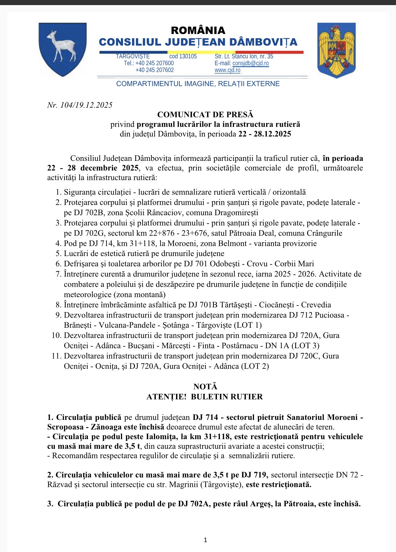 CJDambovita si LDPDambovita: Comunicat de Presă.