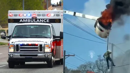 Un incident șocant a avut loc în Baton Rouge, Louisiana, unde un muncitor utilitar a rămas prins într-un coș de lucru cuprins de flăcări, suspendat în aer, relatează The Sun.