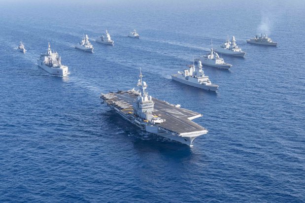 „Franţa a dislocat 19 dintre cele 23 de nave de luptă de suprafaţă majore ale sale, inclusiv portavionul Charles de Gaulle, opt fregate şi două portavioane de elicopter din clasa Mistral, lăsând baza sa navală principală de la Toulon aproape complet goală, într-un ritm operaţional fără precedent pentru Marina Naţională”, a scirs şi editorul Naval News, Xavier Vavasseur. Emmanuel Macron construieşte simultan o coaliţie europeană şi asiatică mai largă pentru a contribui cu nave de război suplimentare, poziţionând Franţa ca singura naţiune a continentului capabilă să proiecteze independent puterea de atac a portavioanelor.